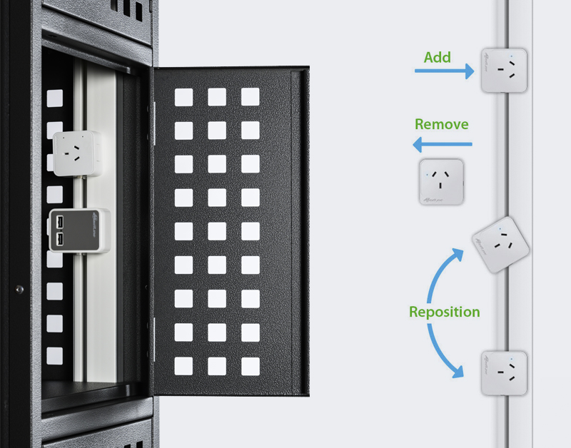 The Mainline™ powered track that runs the full length of each locker contains three copper strips (busbars) which carry the live, earth and neutral cables of the power supply and houses them in a safe, discreet manner so that they are only accessible through specially designed sockets. The powered track accommodates 240 volt GPO sockets, dual USB sockets and the soon to be released USB-C socket. Additional sockets can be ordered as optional extras. The sockets simply insert into the track and twist 90° clockwise to make a connection. Each socket can easily be inserted anywhere along the track. To release, just push a button and turn anticlockwise. To secure the socket on a permanent basis insert a specially supplied screw in the side to prevent unlocking.